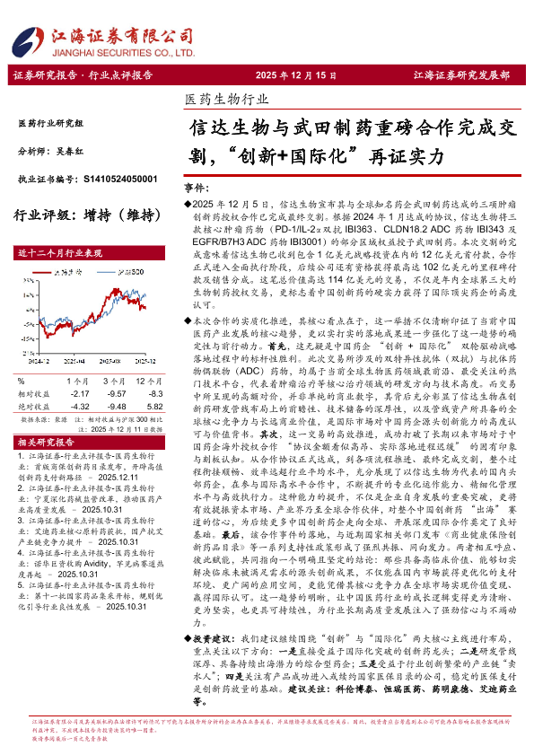 【江海证券】【202512】医药生物行业_信达生物与武田制药重磅合作完成交割_创新+国际化_再证实力-4页