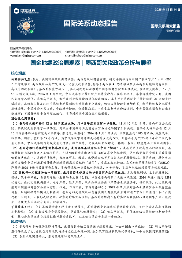 【国金证券】【202512】国金地缘政治周观察|墨西哥关税政策分析与展望-13页