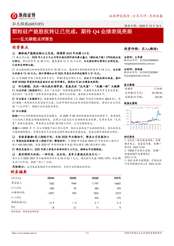 【浙商证券】【202512】颗粒硅产能股权转让已完成,期待 Q4业绩表现亮眼——弘元绿能点评报告-4页