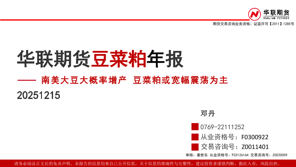 【华联期货】【202512】华联期货豆菜粕年报_南美大豆大概率增产_豆菜粕或宽幅震荡为主-32页