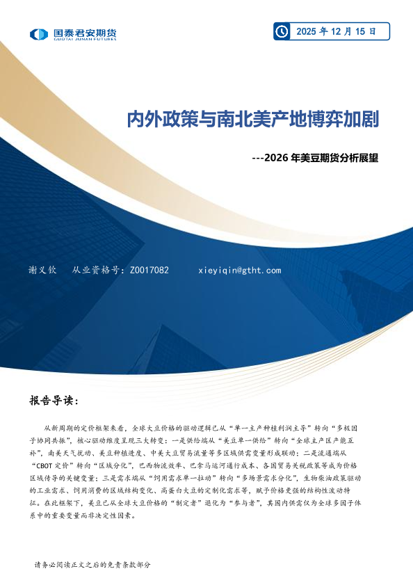 【国泰君安期货】【202512】2026年美豆期货分析展望_内外政策与南北美产地博弈加剧-14页