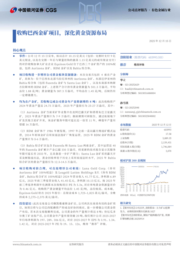 【银河证券】【202512】收购巴西金矿项目,深化黄金资源布局-4页