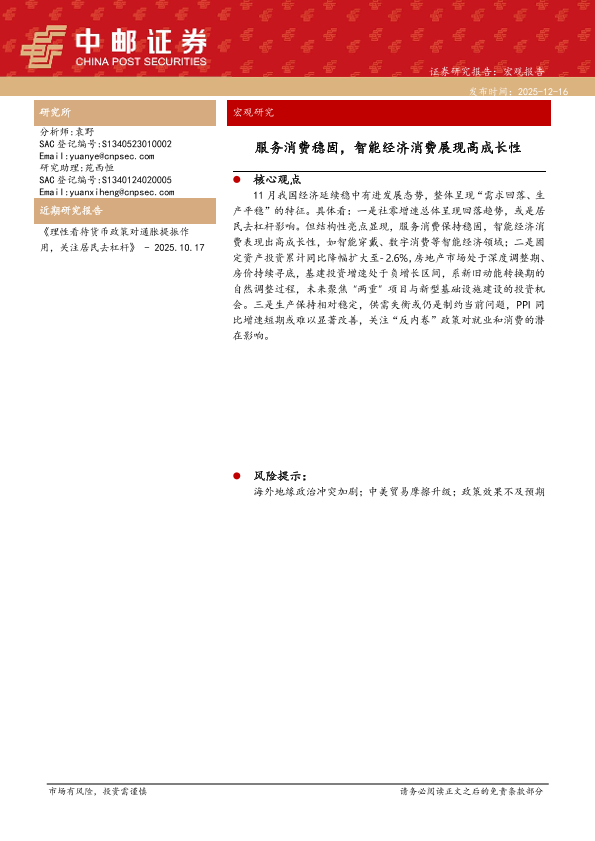 【中邮证券】【202511】服务消费稳固,智能经济消费展现高成长性-11页