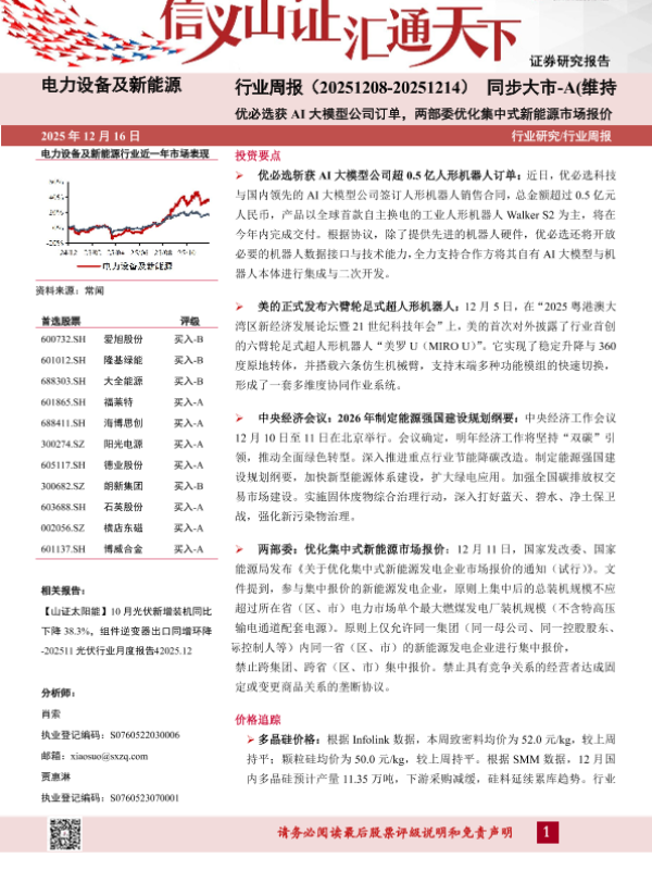 光伏 投资建议 新能源 政策分析 行业周报