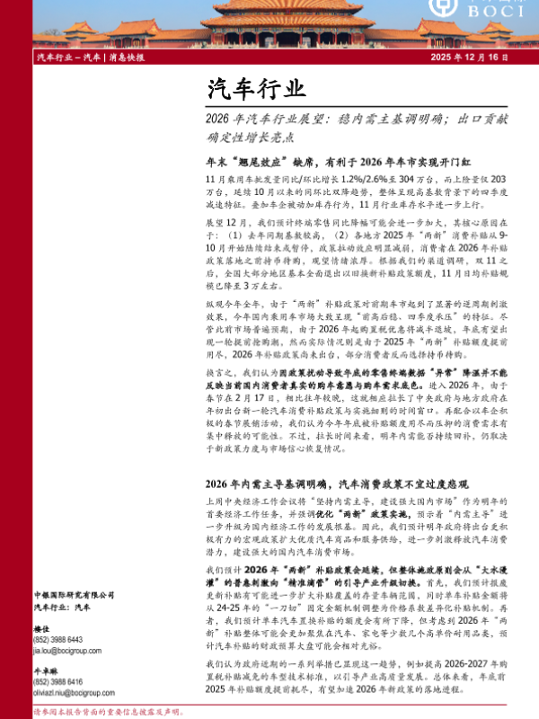 【中银国际研究有限公司】【202512】2026年汽车行业展望:稳内需主基调明确,出口贡献确定性增长亮点-5页
