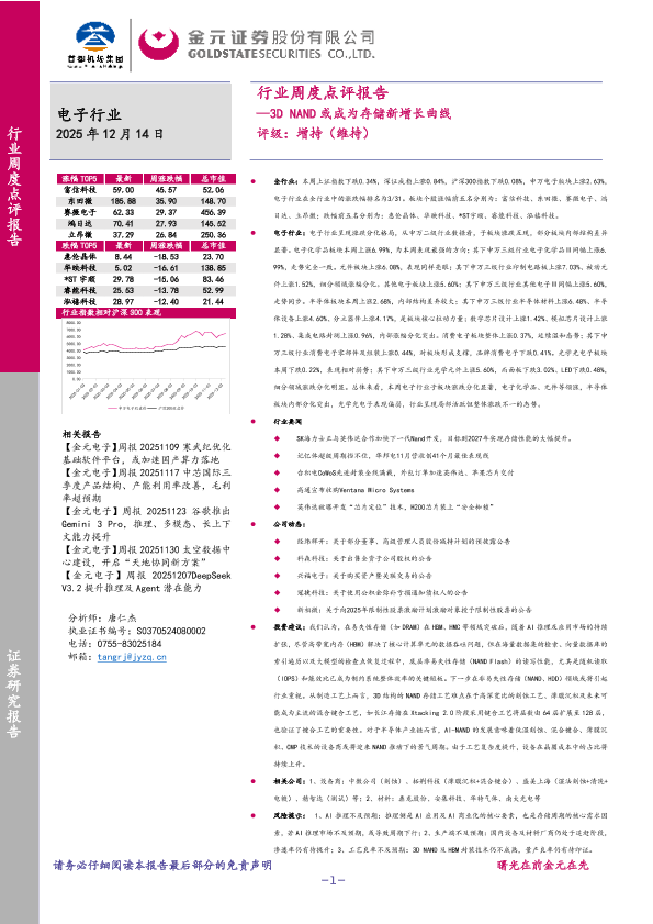 【金元证券】【202512】电子行业周度点评报告:3D NAND或成为存储新增长曲线-27页