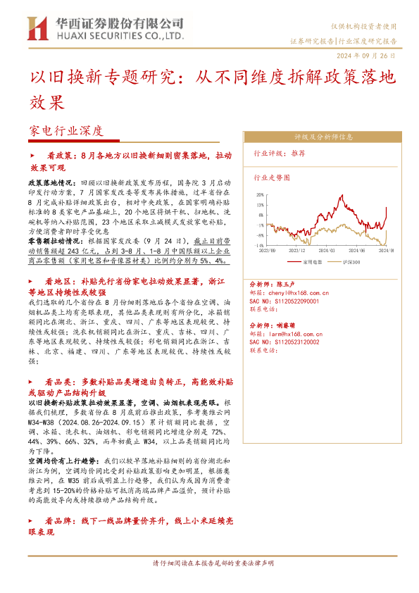 【华西证券】【20240926】家电行业深度-以旧换新专题研究:从不同维度拆解政策落地效果-21页