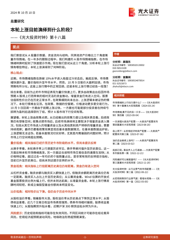 【光大证券】【20241010】本轮上涨目前演绎到什么阶段?-12页
