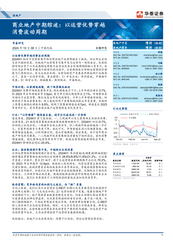 【华泰证券】【20241008】房地产行业商业地产中期综述:以运营优势穿越消费波动周期-18页