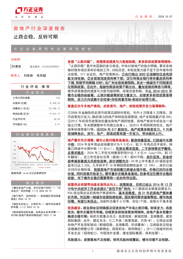 【方正证券】【20241007】房地产行业深度报告:止跌企稳,反转可期-36页