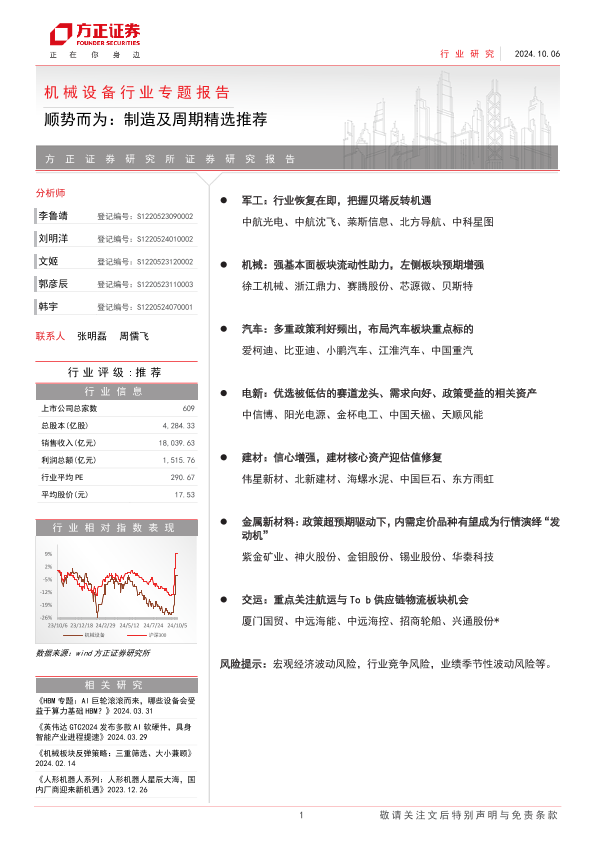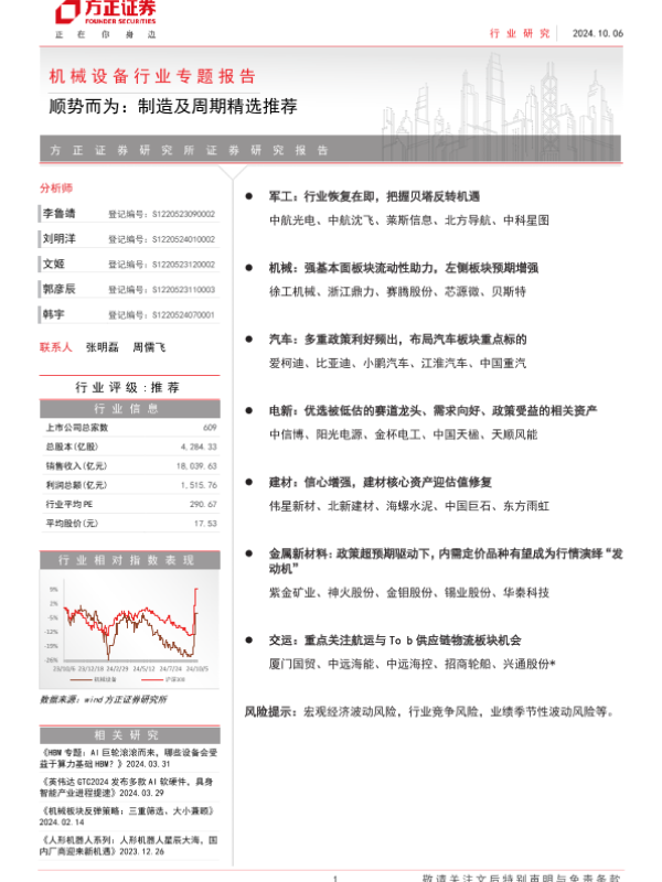 【方正证券】【20241006】机械设备行业专题报告:顺势而为,制造及周期精选推荐-10页