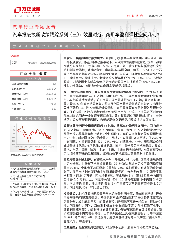 【方正证券】【20240929】汽车行业专题报告-汽车报废换新政策跟踪系列(三):效显时近,商用车盈利弹性空间几何?-17页