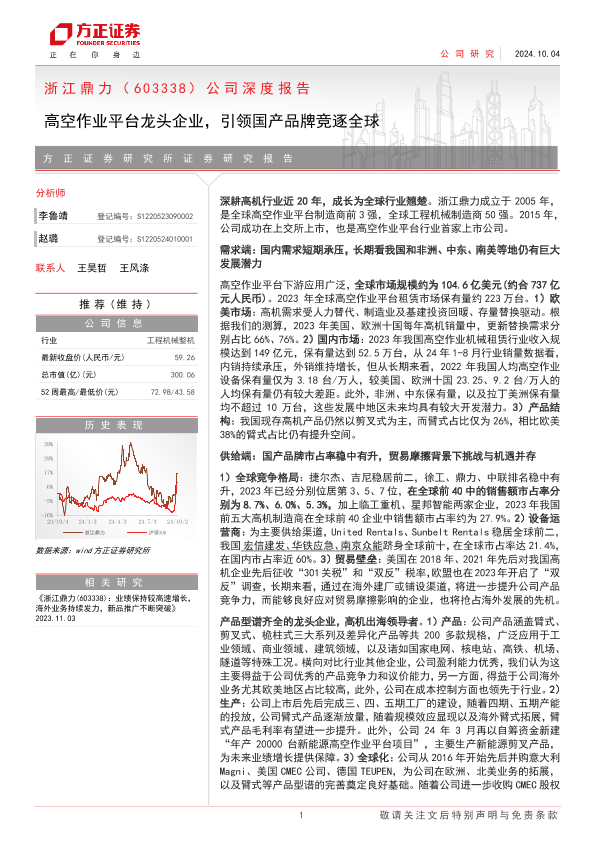 【方正证券】【20241004】浙江鼎力(603338)公司深度报告:高空作业平台龙头企业,引领国产品牌竞逐全球-31页