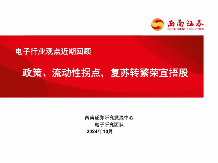 【西南证券】【202410】电子行业观点近期回顾:政策、流动性拐点,复苏转繁荣宜捂股-15页