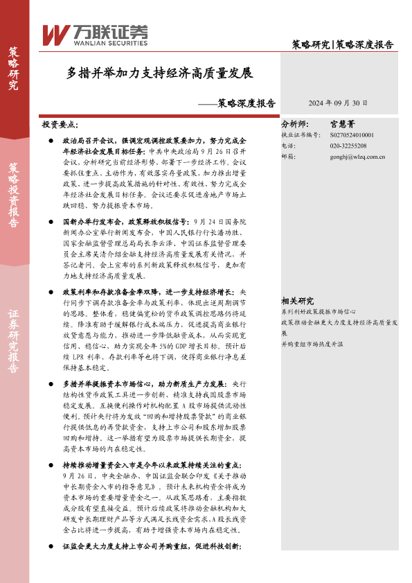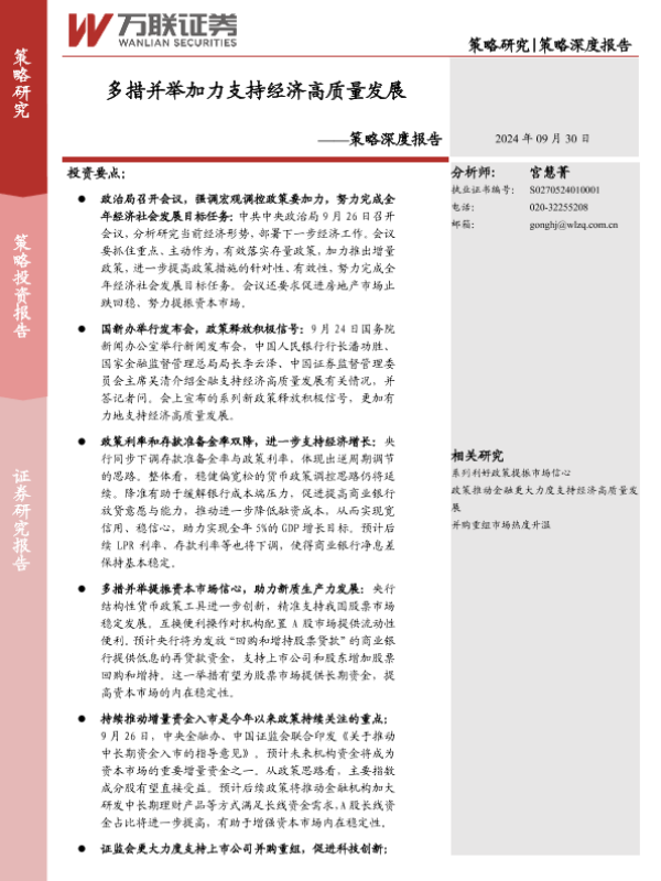【万联证券】【20240930】策略深度报告:多措并举加力支持经济高质量发展-15页