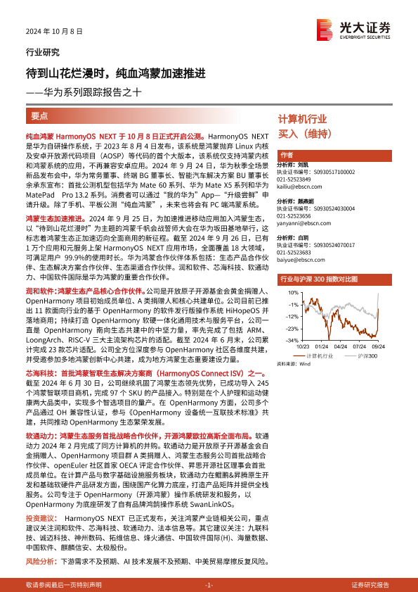 【光大证券】【20241008】计算机行业华为系列跟踪报告之十:待到山花烂漫时,纯血鸿蒙加速推进-24页