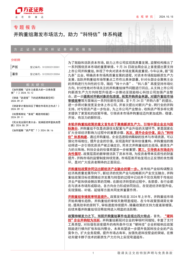 【方正证券】【20241015】专题报告:并购重组激发市场活力,助力“科特估”体系构建-17页
