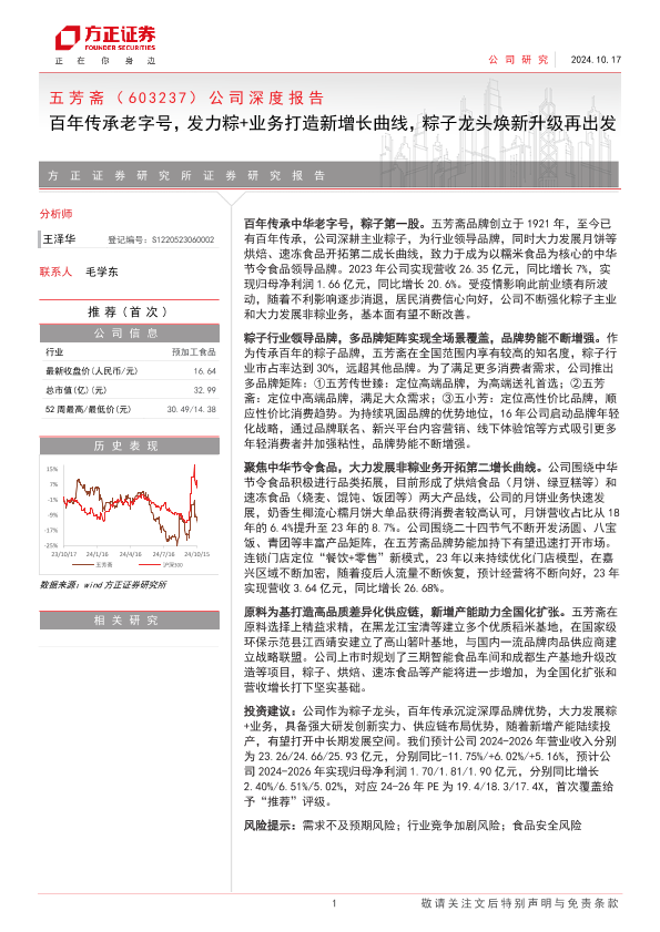 【方正证券】【20241017】五芳斋(603237)公司深度报告:百年传承老字号,发力粽+业务打造新增长曲线,粽子龙头焕新升级再出发-36页