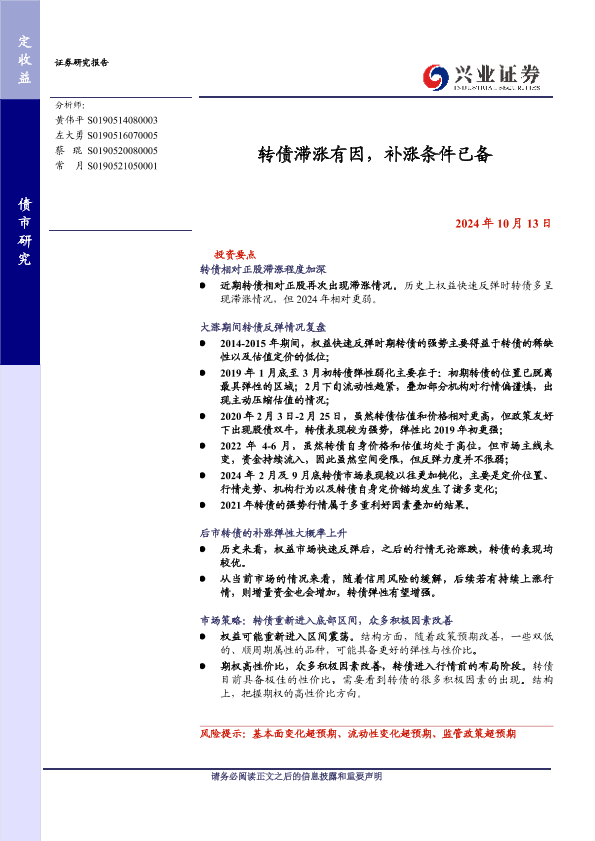 【兴业证券】【20241013】转债滞涨有因,补涨条件已备-25页