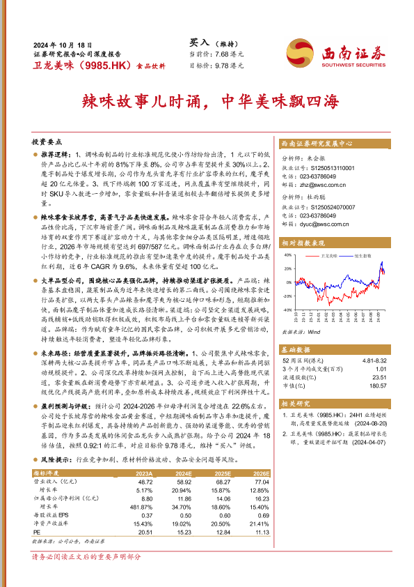 【西南证券】【20241018】卫龙美味(9985.HK)辣味故事儿时诵,中华美味飘四海-47页