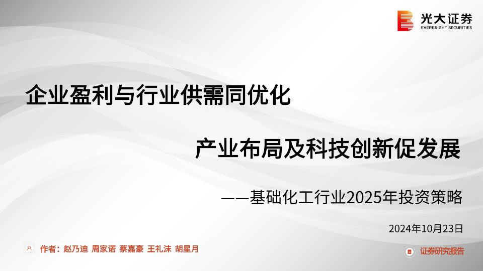 【光大证券】【20241023】基础化工行业2025年投资策略:企业盈利与行业供需同优化,产业布局及科技创新促发展-61页