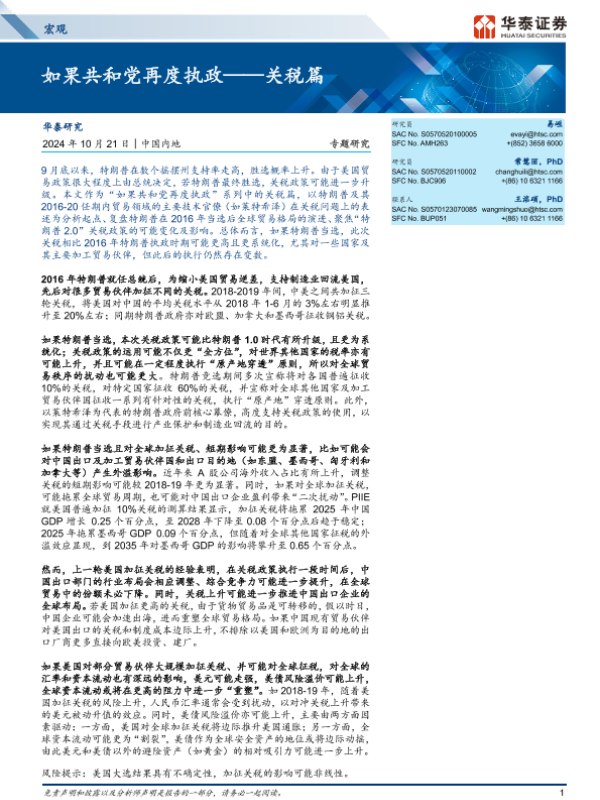 【华泰证券】【20241021】宏观专题研究:如果共和党再度执政-关税篇-17页