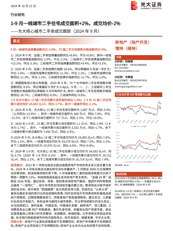 【光大证券】【20241021】房地产行业核心城市二手房成交跟踪(2024年9月)-11页
