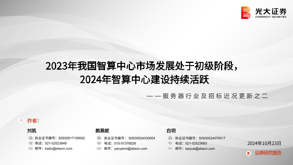 【光大证券】【20241023】服务器行业及招标近况更新之二:2023年我国智算中心市场发展处于初级阶段,2024年智算中心建设持续活跃-17页