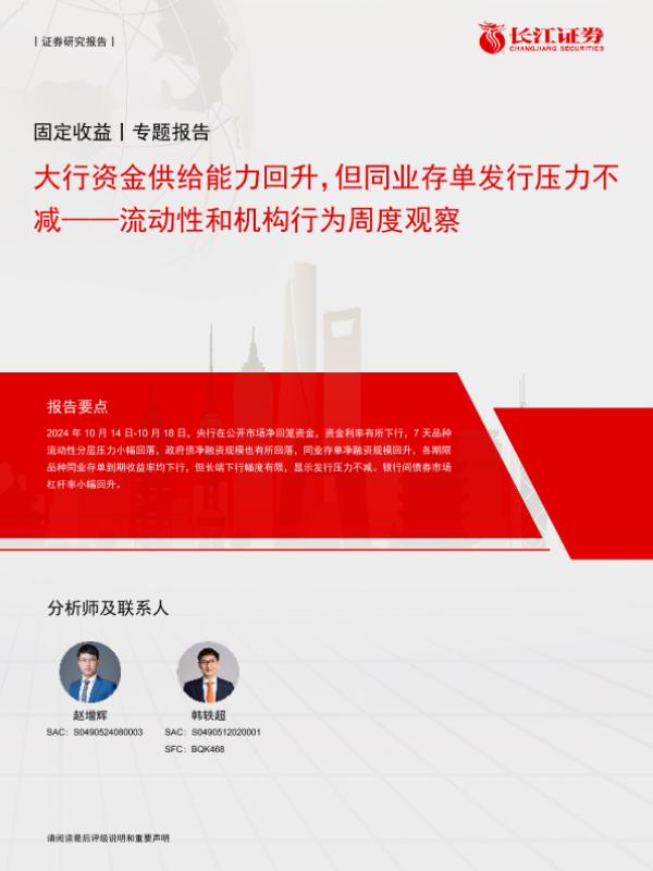 【长江证券】【20241020】大行资金供给能力回升,但同业存单发行压力不减——流动性和机构行为周度观察-15页
