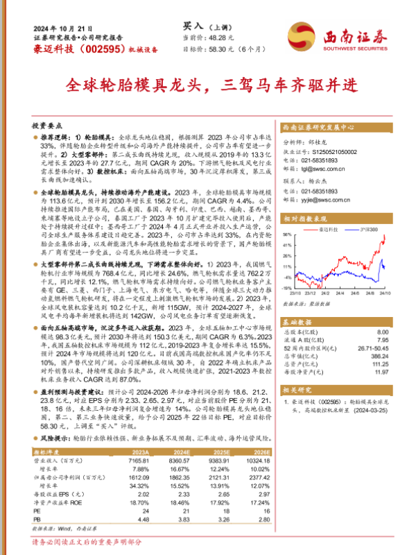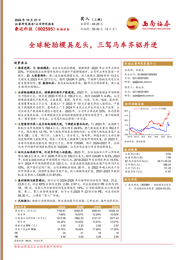【西南证券】【20241021】豪迈科技(002595)全球轮胎模具龙头,三驾马车齐驱并进-35页