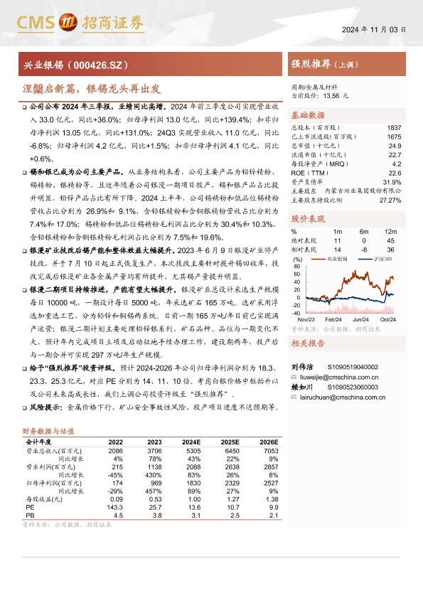 【海通证券】【20241103】兴业银锡(000426)涅槃启新篇,银锡龙头再出发-14页