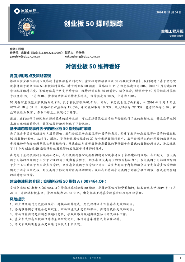 【国金证券】【20241104】创业板50择时跟踪:对创业板50维持看好-11页