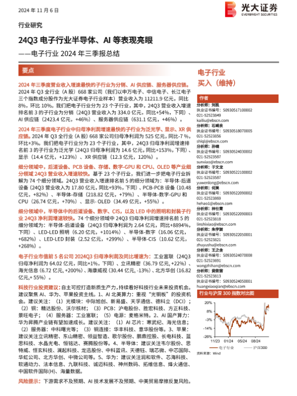 【光大证券】【20241106】电子行业2024年三季报总结:24Q3电子行业半导体、AI等表现亮眼-21页