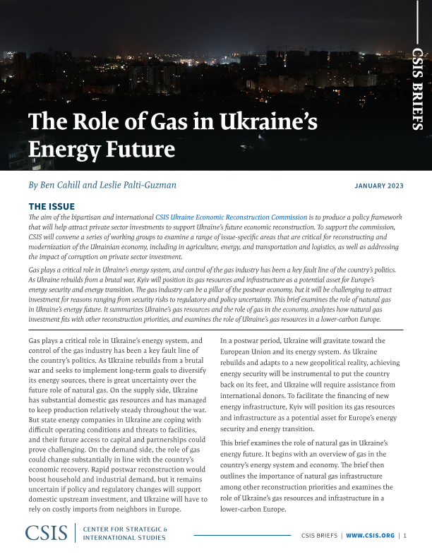 【国际战略研究中心(CSIS)】【20230101】天然气在乌克兰能源未来中的作用-9页