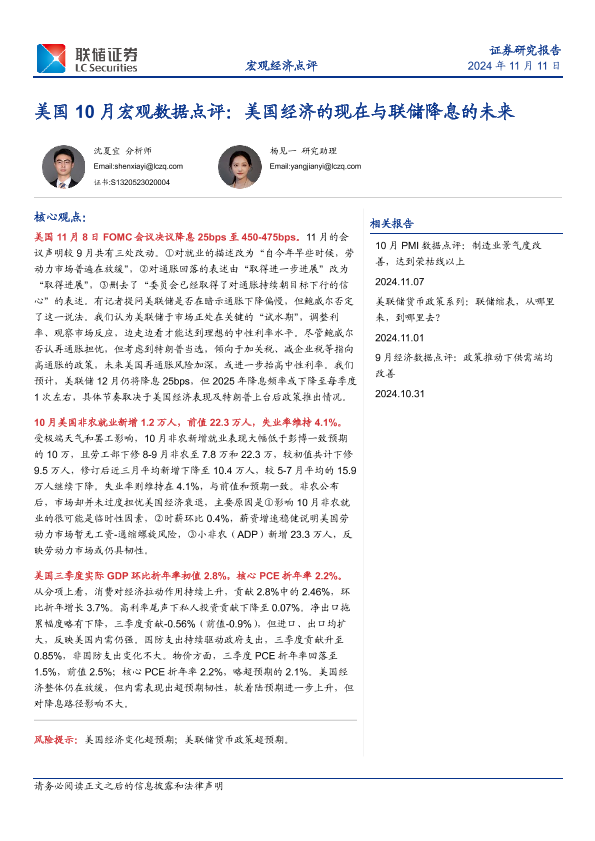 【联储证券】【20241111】美国10月宏观数据点评:美国经济的现在与联储降息的未来-14页