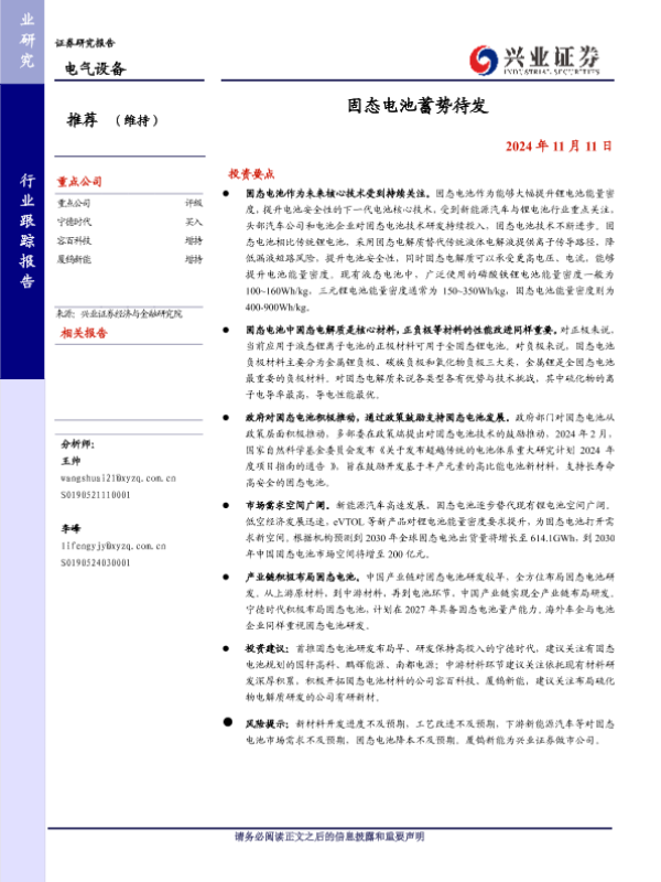 【兴业证券】【20241111】电气设备行业:固态电池蓄势待发-21页