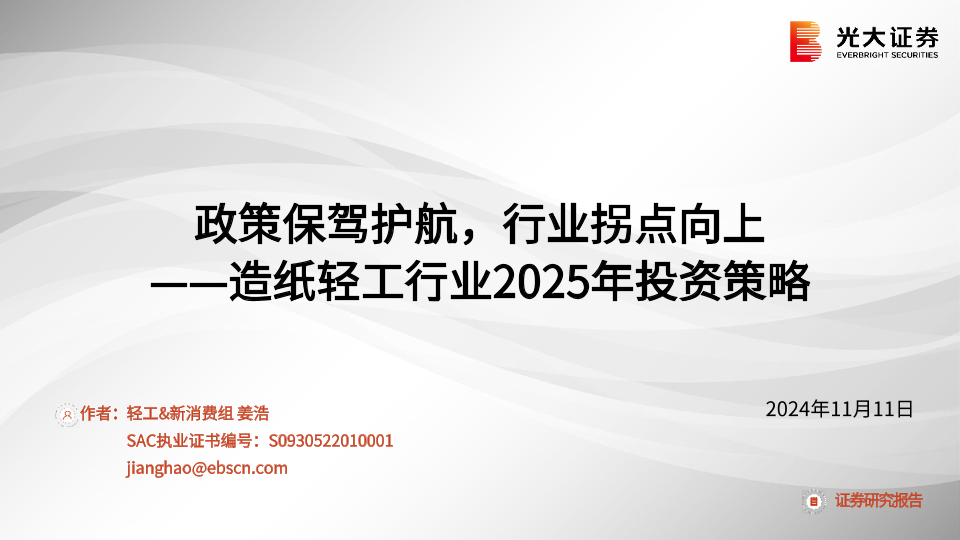 【光大证券】【20241111】造纸轻工行业2025年投资策略:政策保驾护航,行业拐点向上-57页