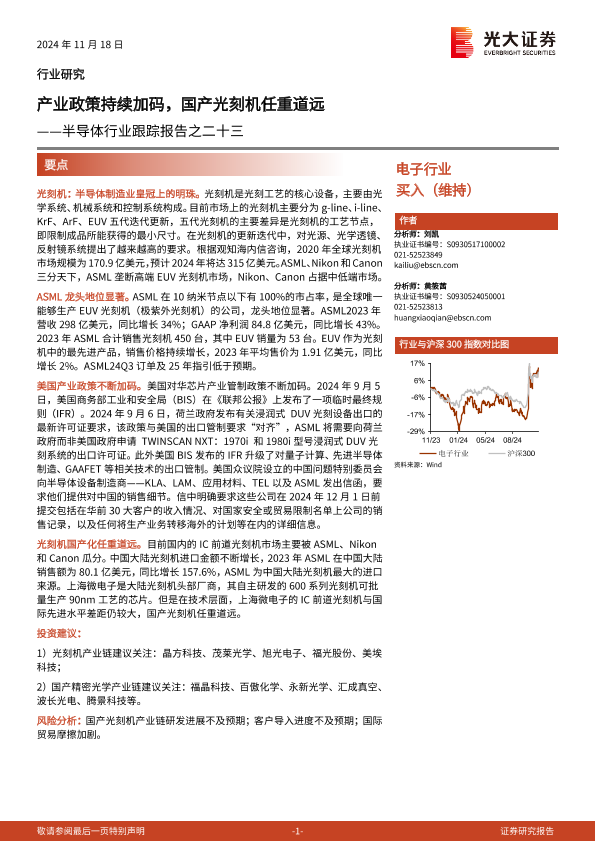【光大证券】【20241118】半导体行业跟踪报告之二十三:产业政策持续加码,国产光刻机任重道远-28页