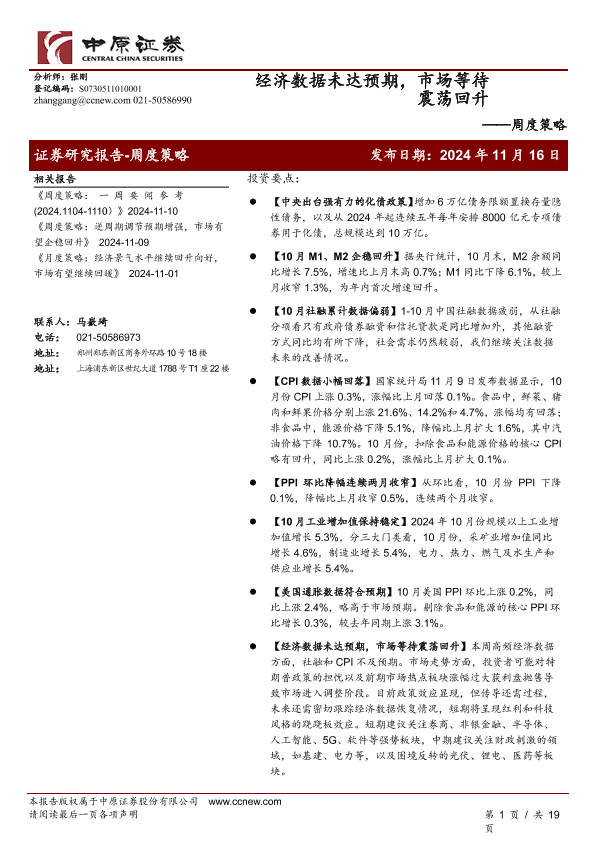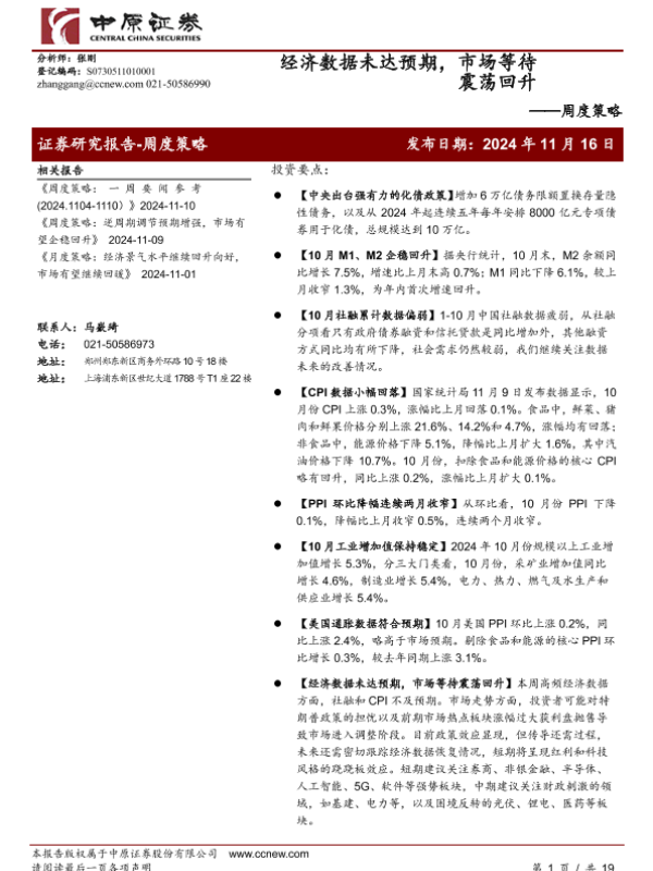 【中原证券】【20241116】周度策略:经济数据未达预期,市场等待震荡回升-19页