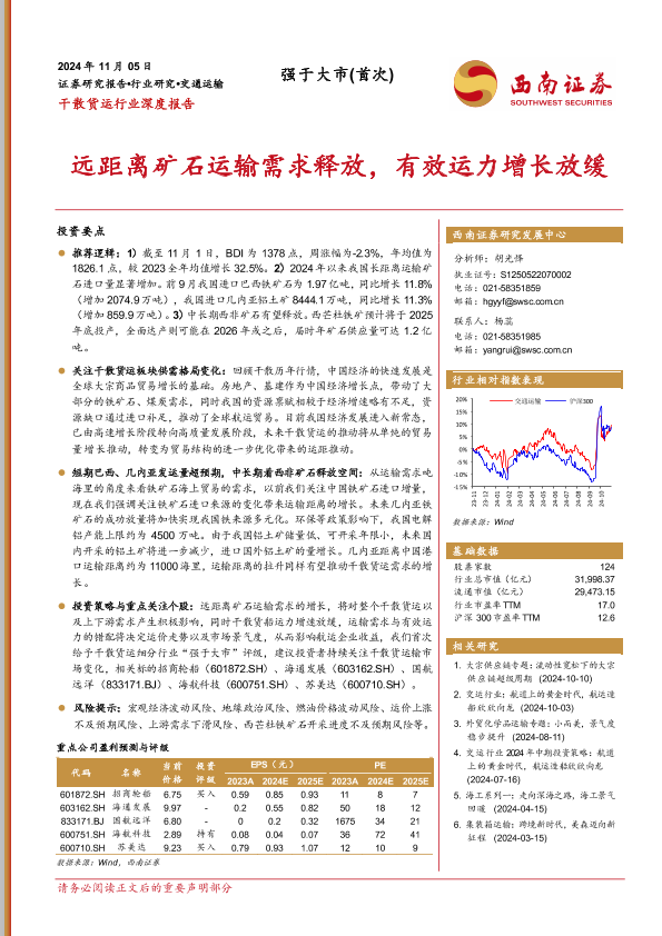 【西南证券】【20241105】干散货运行业深度报告:远距离矿石运输需求释放,有效运力增长放缓-36页