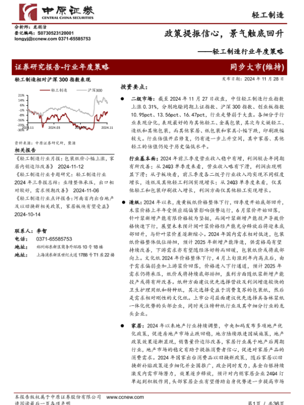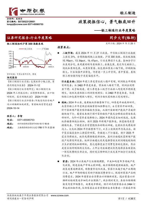 【中原证券】【20241128】轻工制造行业年度策略:政策提振信心,景气触底回升-36页
