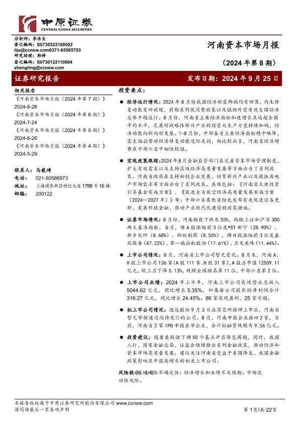 【中原证券】【20240925】河南资本市场月报(2024年第8期)-22页