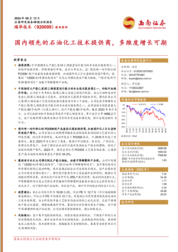 【西南证券】【20240913】瑞华技术(920099)国内领先的石油化工技术提供商,多维度增长可期-34页