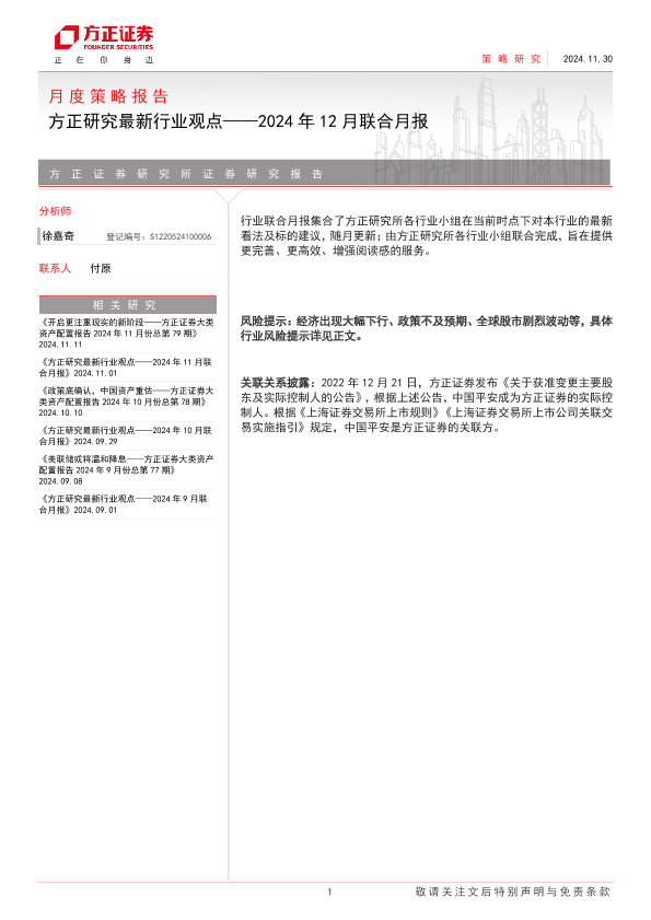 【方正证券】【20241130】月度策略报告:方正研究最新行业观点——2024年12月联合月报-21页