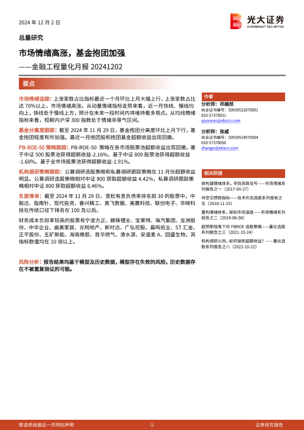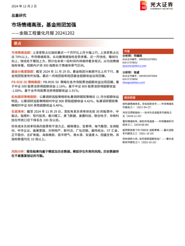【光大证券】【20241202】金融工程量化月报:市场情绪高涨,基金抱团加强-13页