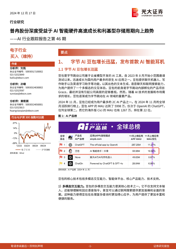 【光大证券】【20241217】AI行业跟踪报告之第46期:普冉股份深度受益于AI智能硬件高速成长和利基型存储周期向上趋势-11页