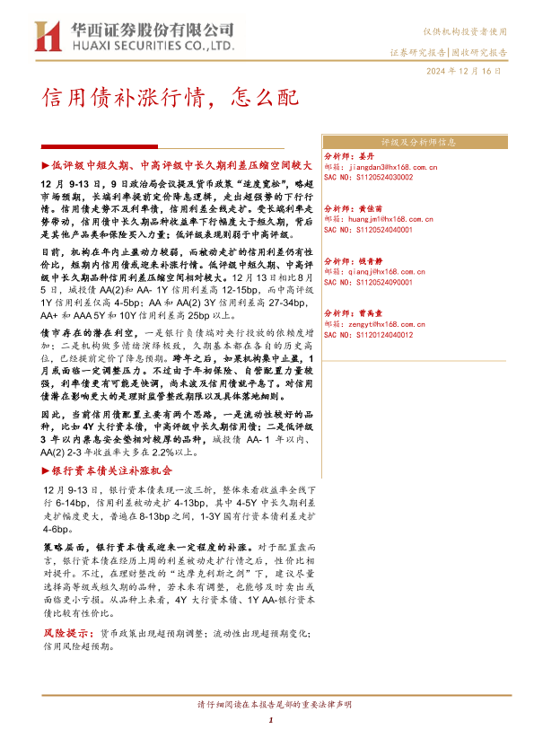 【华西证券】【20241216】固收研究报告:信用债补涨行情,怎么配-18页