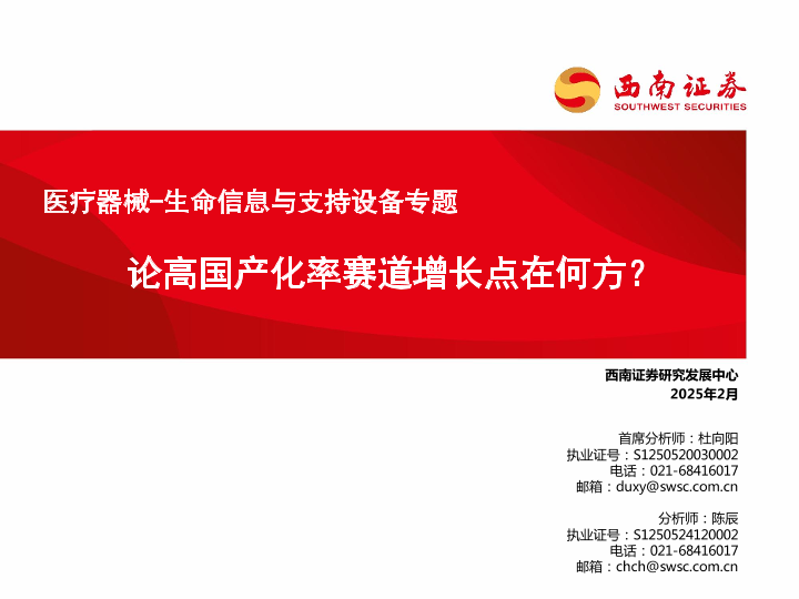 【西南证券】【202502】医疗器械-生命信息与支持设备专题:论高国产化率赛道增长点在何方?-74页
