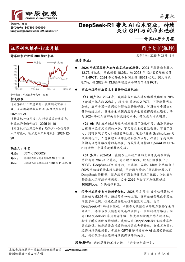 【中原证券】【20250213】计算机行业月报:DeepSeek_R1带来AI技术突破,持续关注GPT_5的推出进程-35页