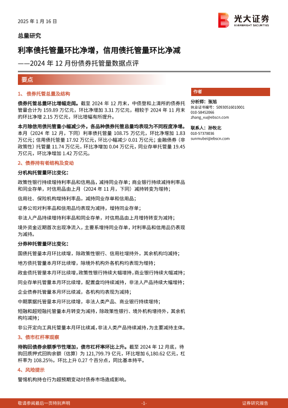 【光大证券】【20250116】2024年12月份债券托管量数据点评:利率债托管量环比净增,信用债托管量环比净减-11页
